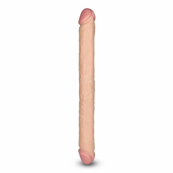 Sumptuous hand-detailing in the heads, veins and shaft has created a dildo thatโs totally authentic in every detail bar one: its twin penetrative ends. Use solo or with a partner, vaginally or anally or both โ the firm-yet-flexible PVC offers multiple play options. Slim heads make insertion a breeze while a pronounced ridge under the head and a naturally textured shaft swell sensation during pleasure sessions.