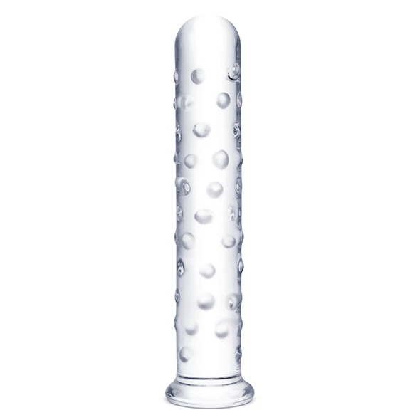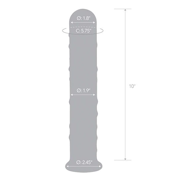 Make your pleasure go the distance with the 10โ Extra Large Glass Dildo that provides superior reach to target internal pleasure zones. Enhance the feel of each thrust with this dildo featuring ridges and nubs all along its shaft that will increase the orgasmic friction as this dildo goes in and out of your preferred orifice. The elongated shaft of this toy makes it perfect for use during solo or partner play, plus its flared base ensures safety during use. The rounded smooth tip allows for easy insertion vaginally or anally to target the G-Spot or P-spot. Use this dildo with your favorite lubricant to get it ready to slip into your awaiting hole. Glass is uniquely compatible with all lubricants from pleasureStore, so slather this toy in it and get ready to slide into mind-blowing orgasms. This versatile toy can also be heated or cooled to enhance the feel of the glass with temperature play.
