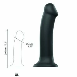 Made from molded silicone, this black double-density dildo will delight you with its softness and ultra-realistic texture. The dildo is composed of a first layer of soft silicone, for a second skin effect, which covers a more rigid core with shape memory, for a unique sensation.